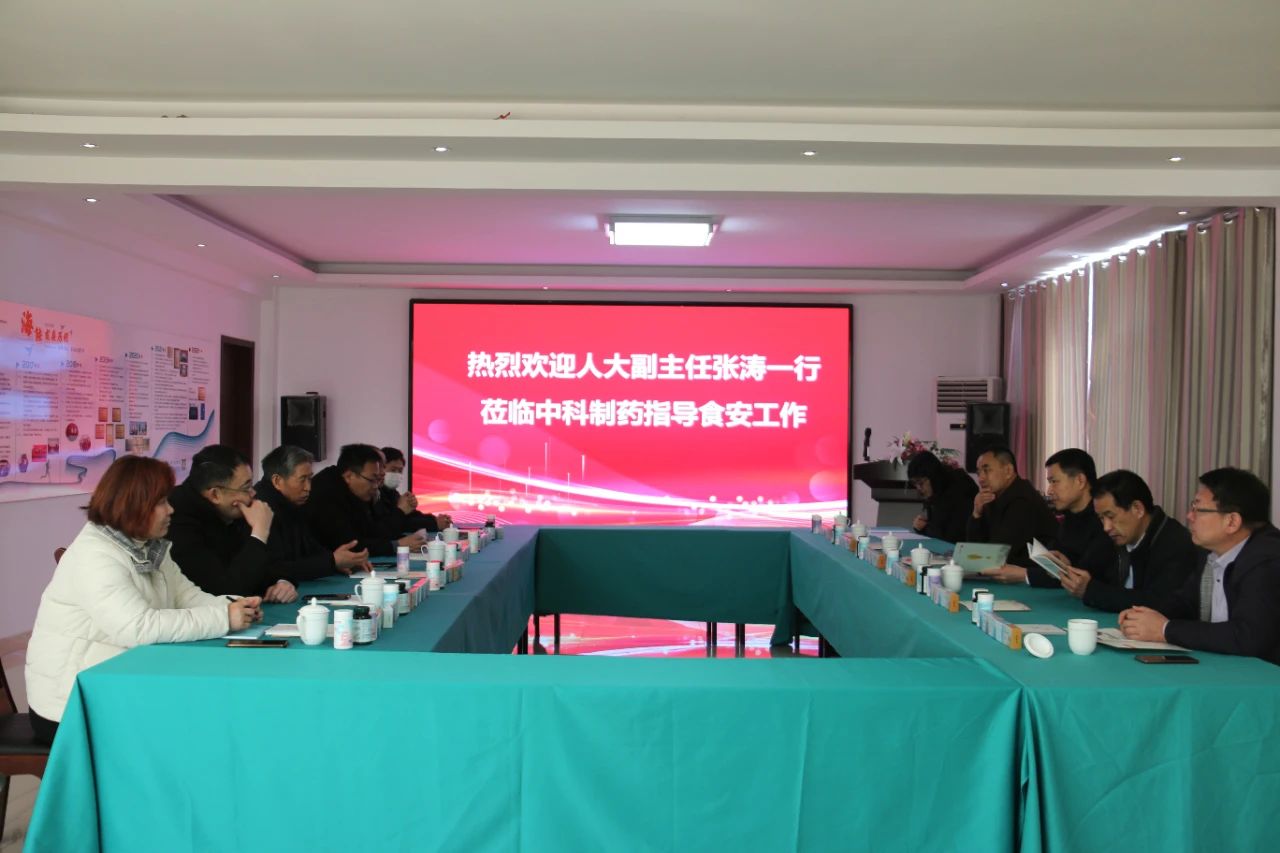 張濤副主任在公司總經理陪同下深入中科制藥生產車間、實驗室,詳細查看了解公司食品安全總監及安全員配備、生產運行管理、檢驗檢測能力等情況,并聽取曹總對于中科制藥的相關工作匯報。