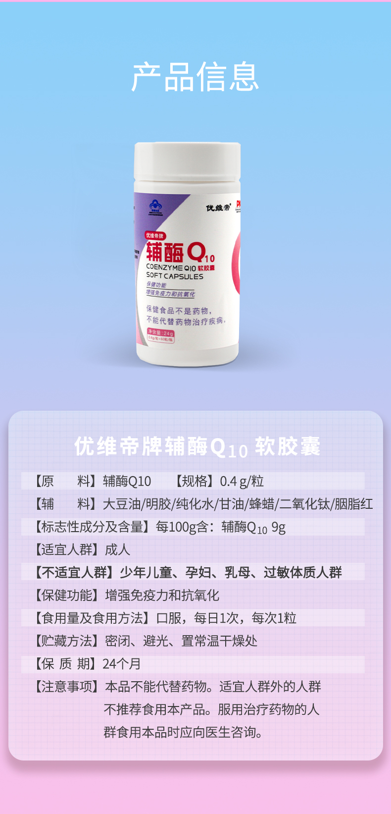 , createDate:2023-04-21 08:44:01.0, tagIdValue:, isHeadline:null, likes:0, image:/static/upload/0c4968f2-ab22-4dfc-b8c0-0c223947eccf.jpg, modelFieldValue:{"gg":"每100g含:輔酶Q10 9g","syz":"成人","tymc":"優維帝牌輔酶Q10軟膠囊","pzwh":"食健備G202237002964"}, author:null, sort:null, isTop:null, subtitle:null, siteId:13, oppose:0, categoryId:1130, status:1}